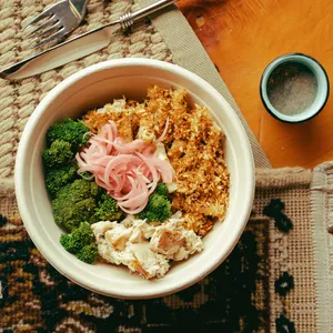 ¡El balance perfecto entre cremosidad y sabor! Pasta penne en salsa tres quesos, pollo rostizado, brócoli cocido, dip de feta, vinagreta miel mostaza y nuestras pita chips crocantes. Un bowl cremoso, sabroso y hecho para disfrutar sin culpa.